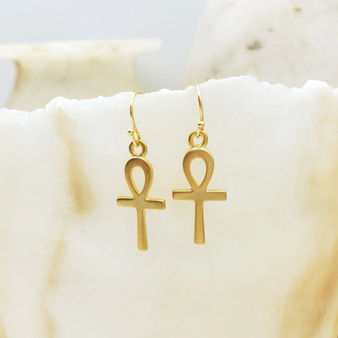 These Ankh Earrings pays tribute to the strength and influence of traditional Egyptian customs while wearing this exquisite ankh talisman.